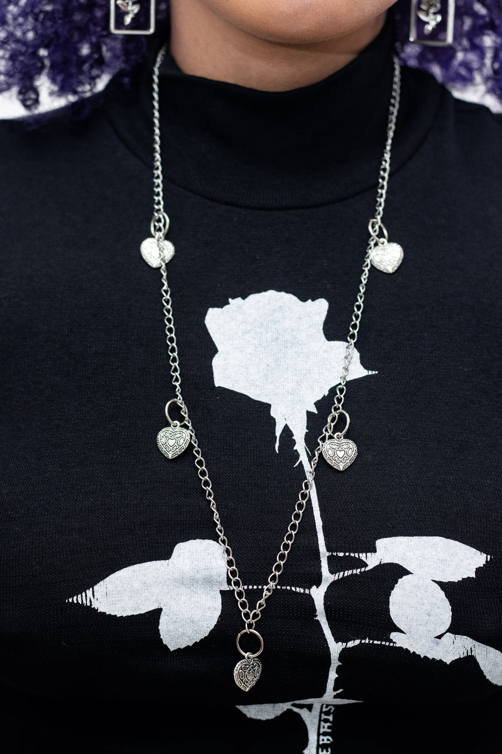 Colar com pingentes de corações em metal