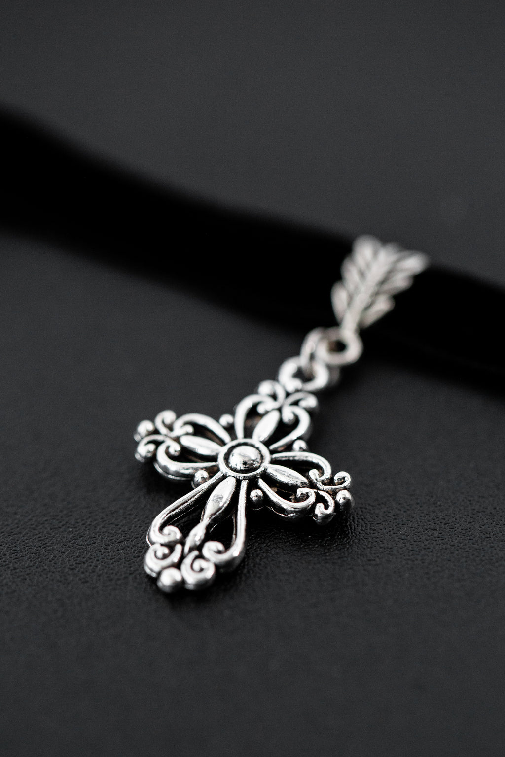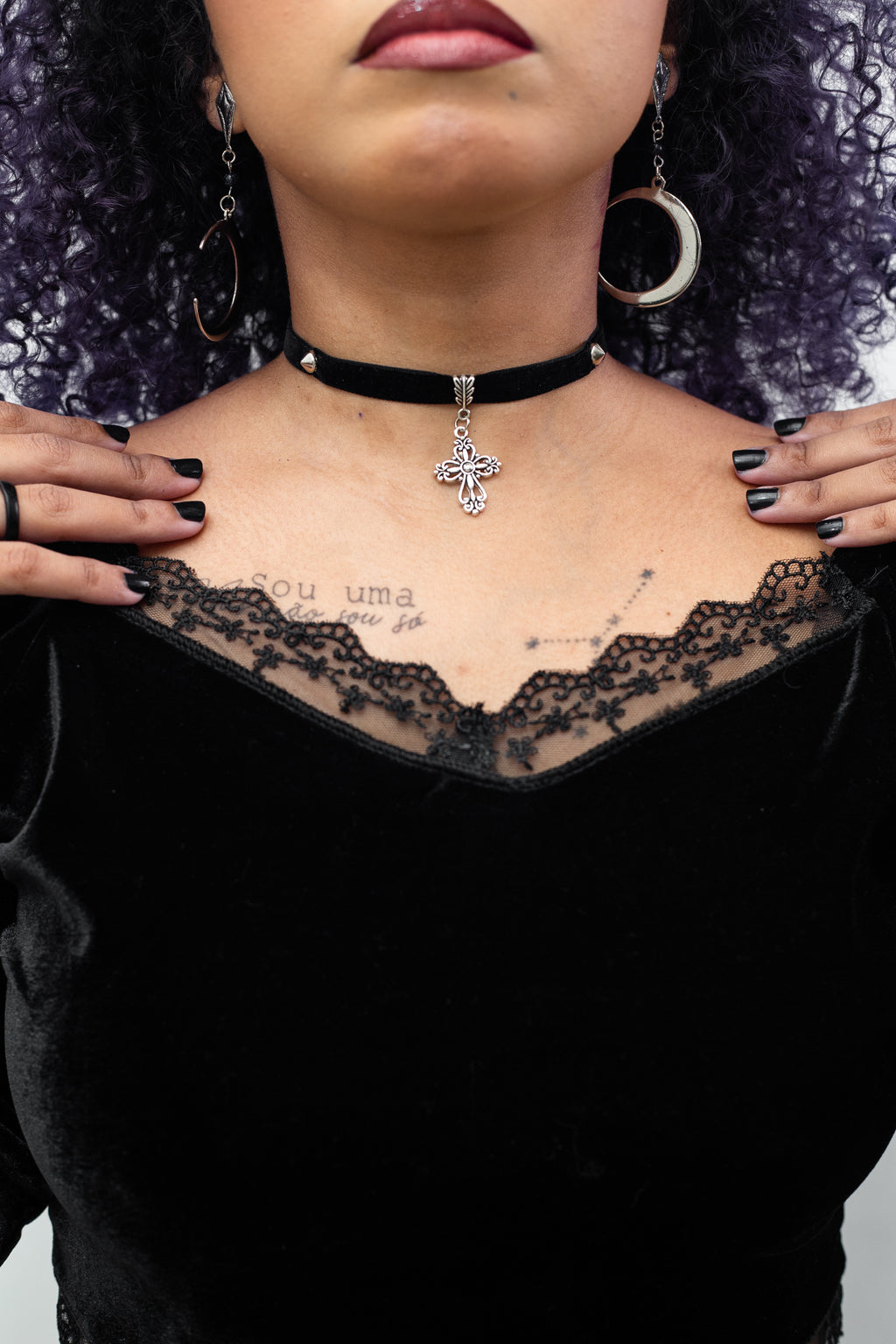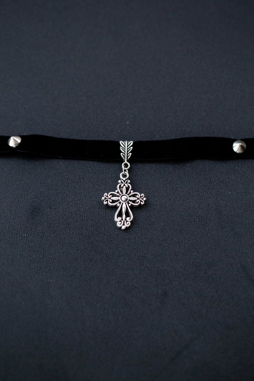 Gargantilha choker de veludo com pingente de cruz