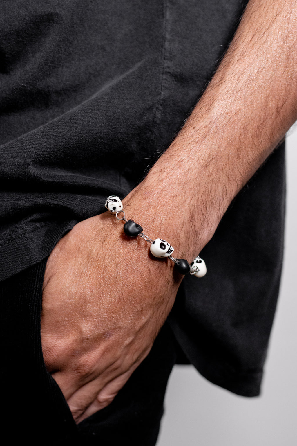 Pulseira com detalhes de caveiras