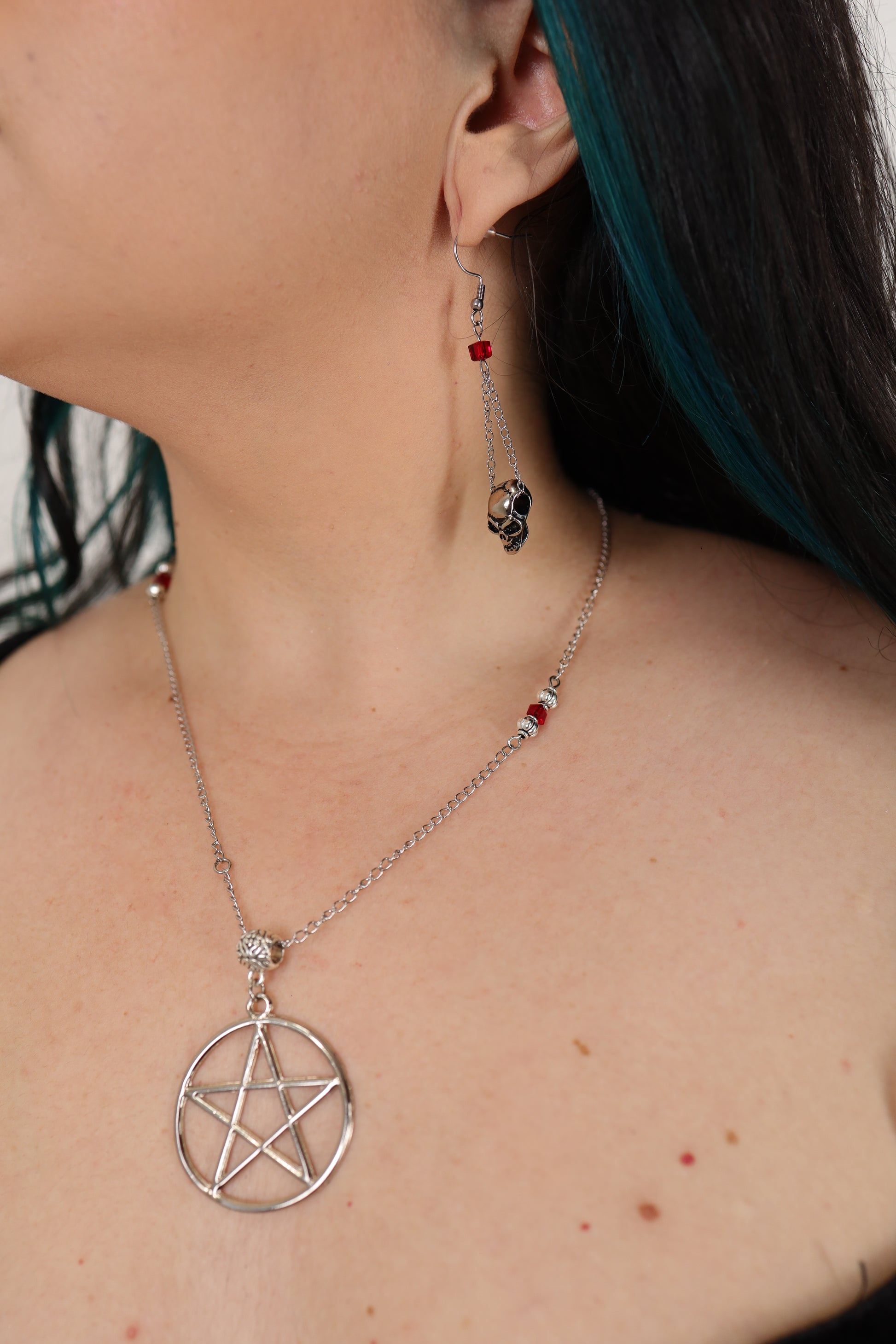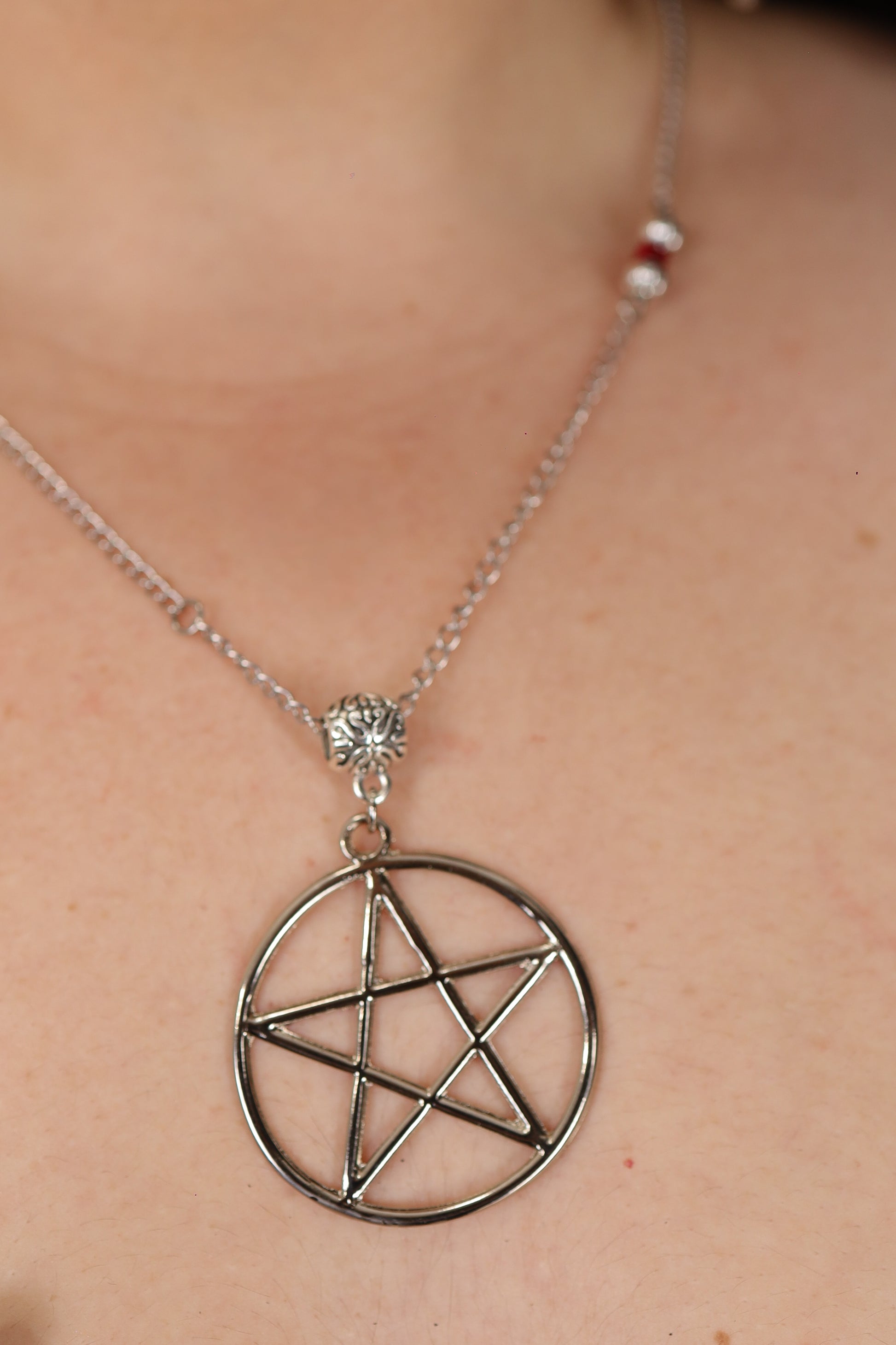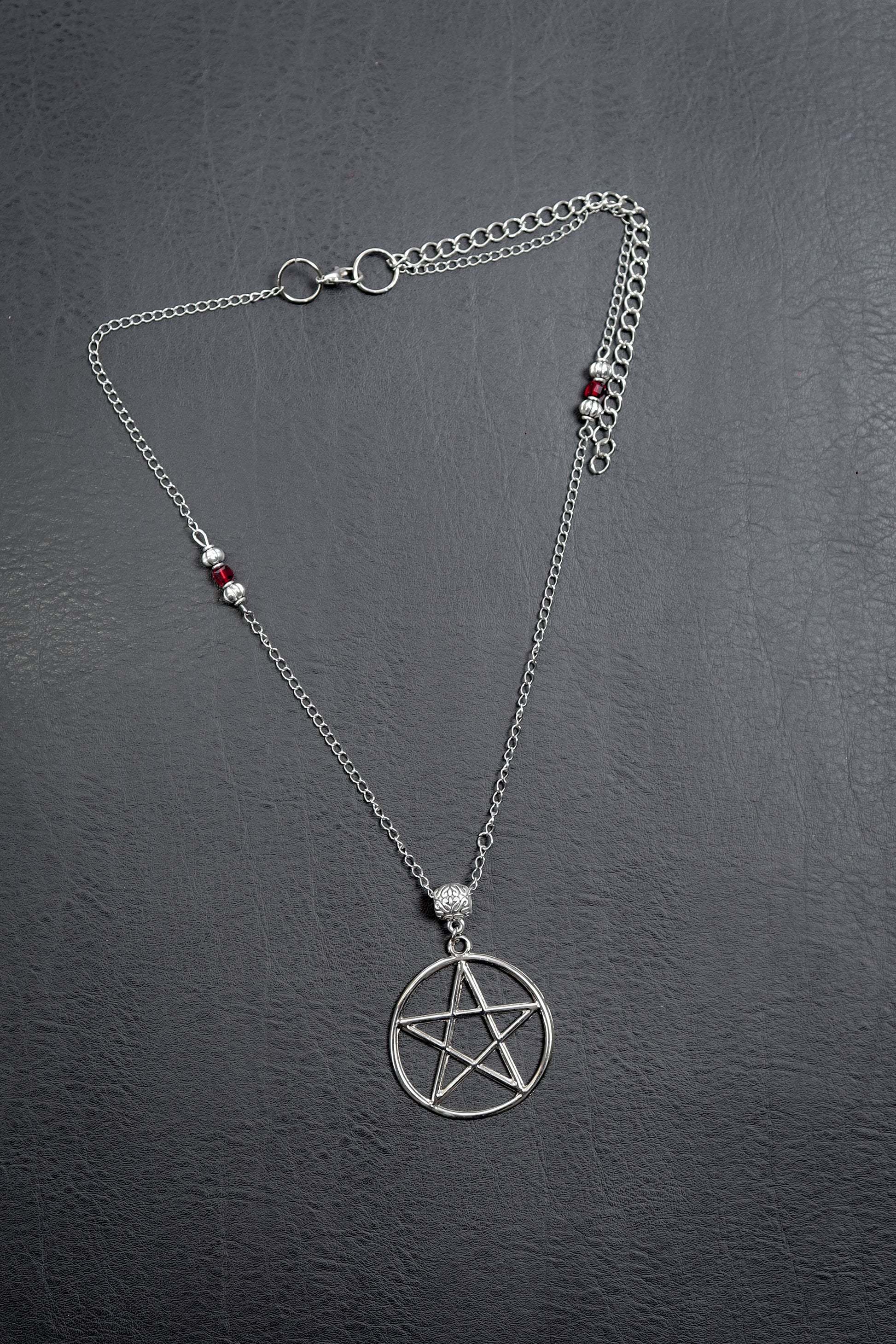 Colar com pingente de Pentagrama e cristal quadrado vermelho