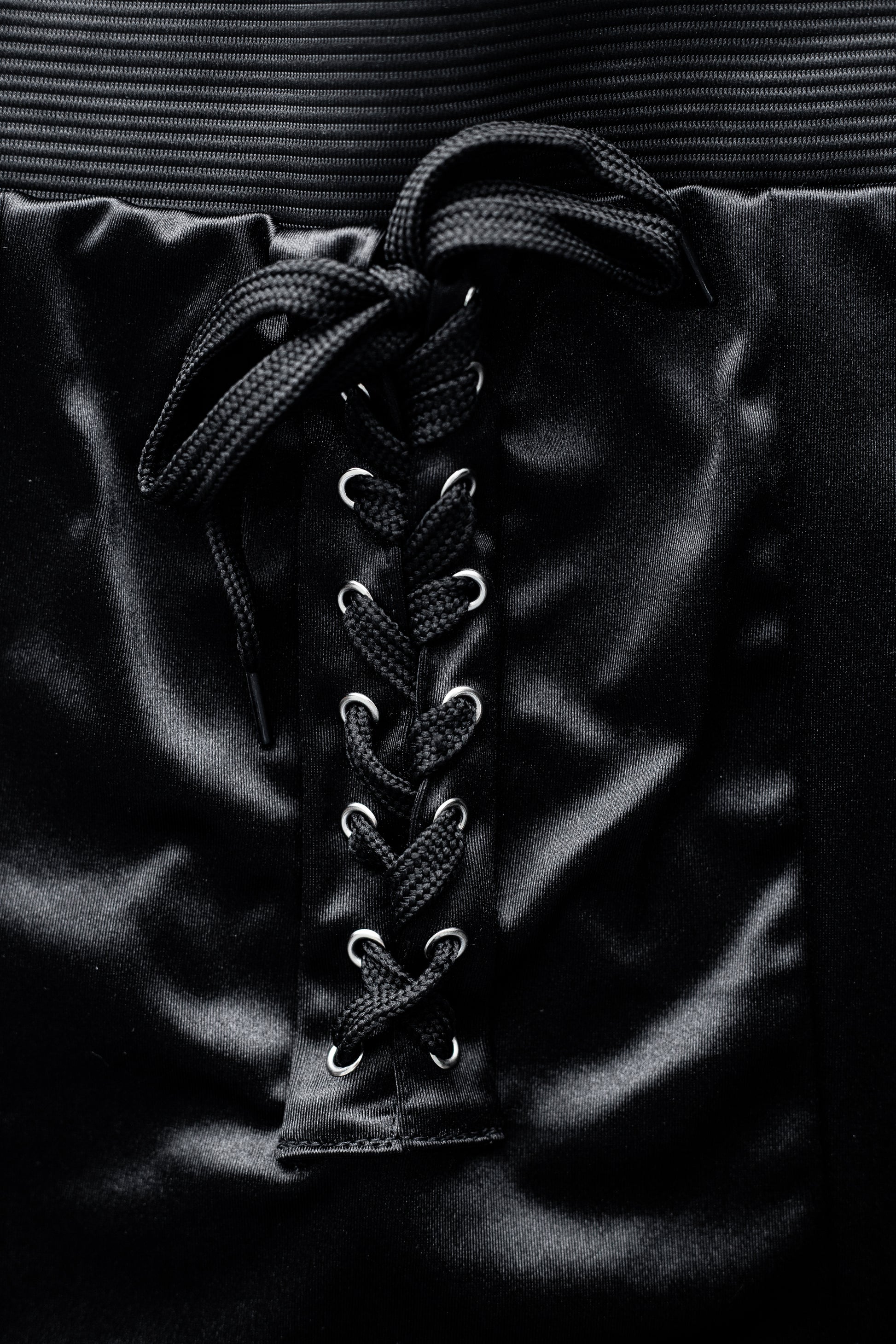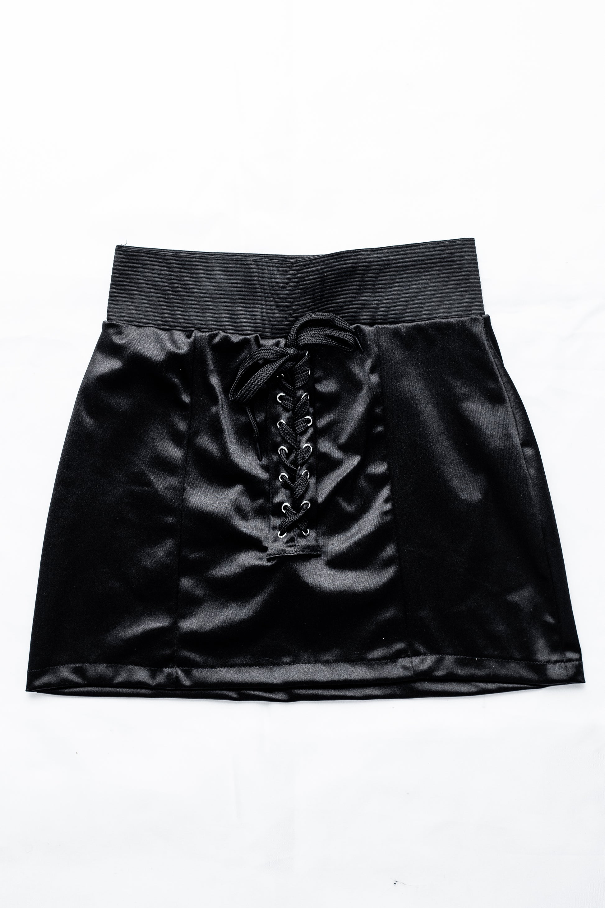 Saia Curta em malha Satin com detalhe em ilhós