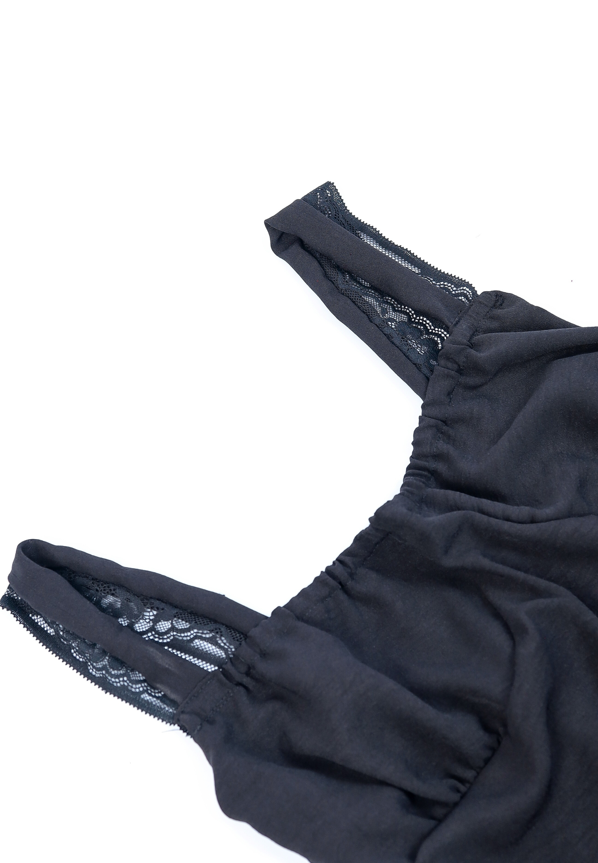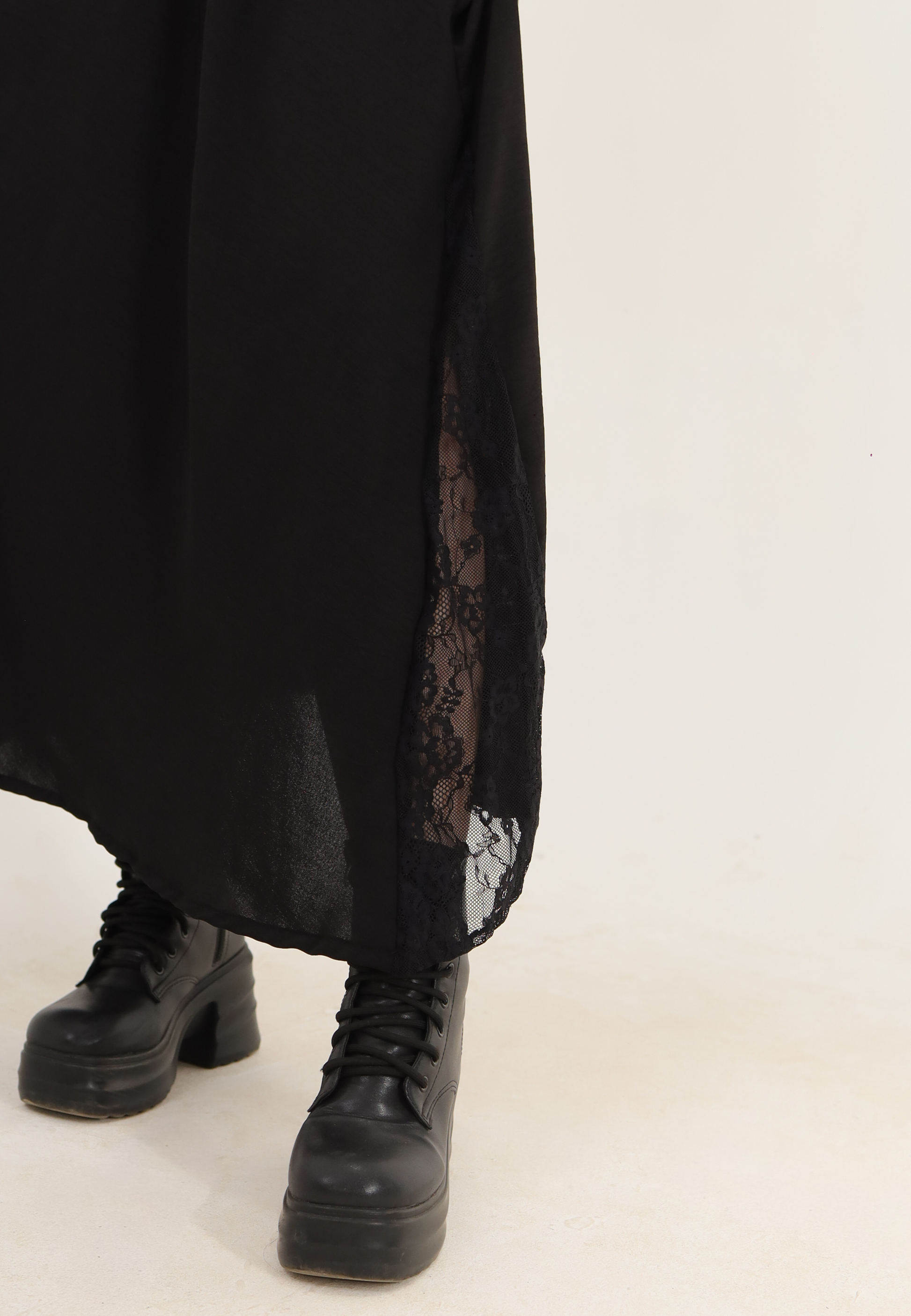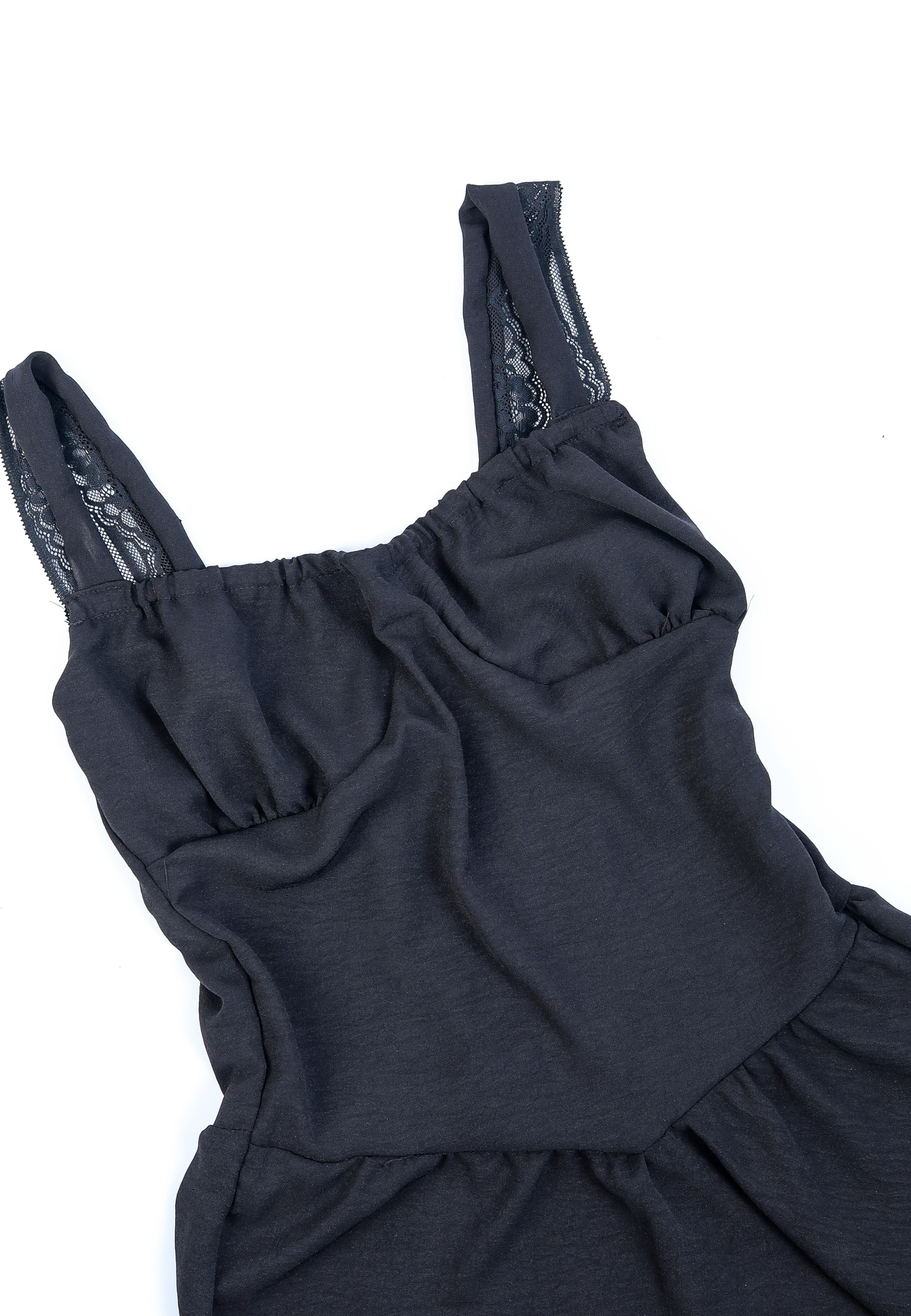 Vestido confeccionado em Crepe Helena com detalhe em renda.